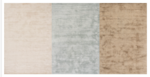 Solid-toned Alva offers elegance and warmth with its soft feel and durable hand-loomed blend. The rug is available in Sand, Sky, and Taupe (shown below left to right) and is handcrafted in India in a wool blend.