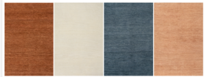 Ramsey has a thick wool texture and simple, solid tone. Available in Rust, Ivory, Juniper, and Rose Quartz (shown left to right below). Handcrafted in India from 100% wool.